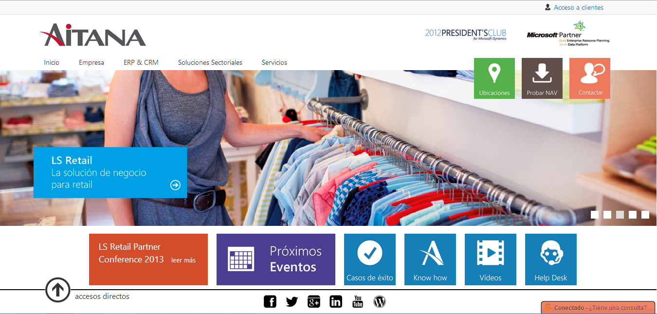 Siguiendo la estrategia de nuestra empresa detectando una área de negocio clave para Aitana como LS Retail, dotamos de un apartado en nuestra web específico para el mundo del retail o la hostelería y siguiendo la estructura de la disposición de contenidos intentar contar de la manera más sintetizada, el potencial que significa para una empresa dedicada al Retail o la Hostelería. Desde que empezamos a trabajar con LS Retail ya contamos con folletos traducidos al castellano y realizamos tanto Seminarios Online como Seminarios Presenciales y seguiremos trabajando para contar las grandes ventajas de disponer una solución pensada por y para los profesionales del mundo del retail o la hostelería.